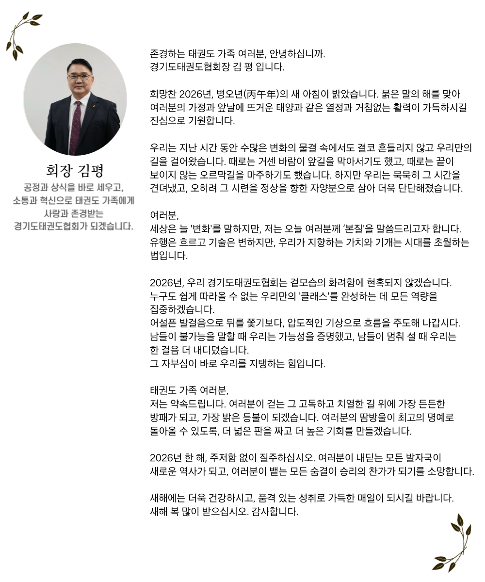 2026년, 우리 경기도태권도협회는 겉모습의 화려함에